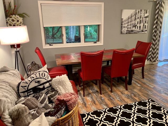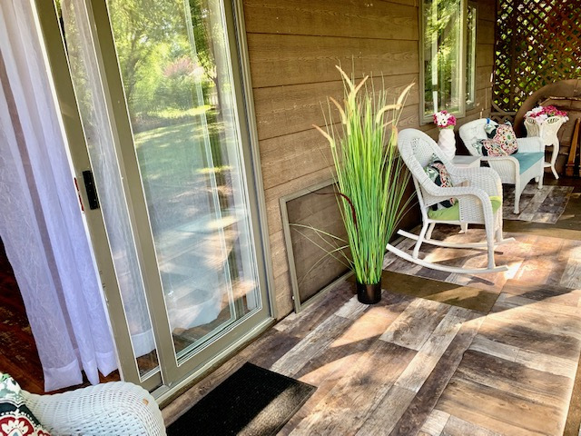 The theme of this unit is airplanes in honor of Oshkosh’s EAA show. There is also a lovely spacious patio furnished with white wicker furniture that looks out on a very small stream “Sawyer Creek.” Location is only blocks from big box stores and highway access, but tucked away with a little corner of nature in the back yard where you can frequently see deer, herons, cranes, woodchucks, squirrels, ducks and more!
