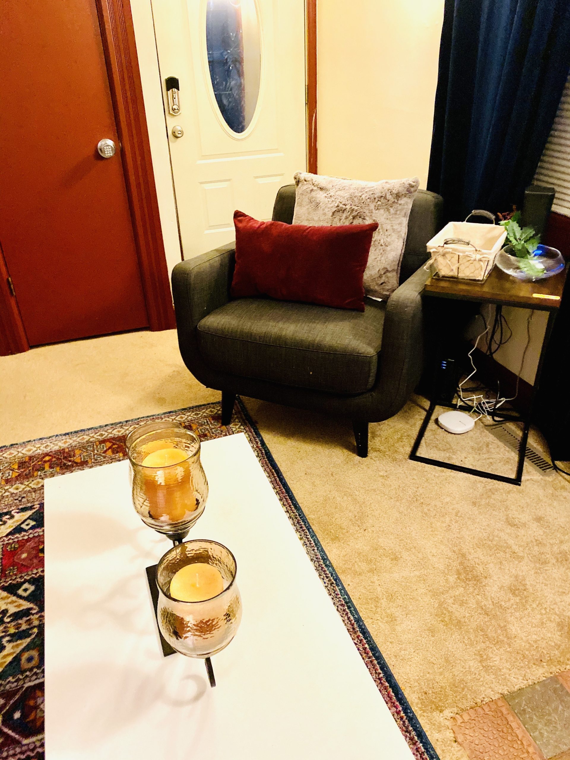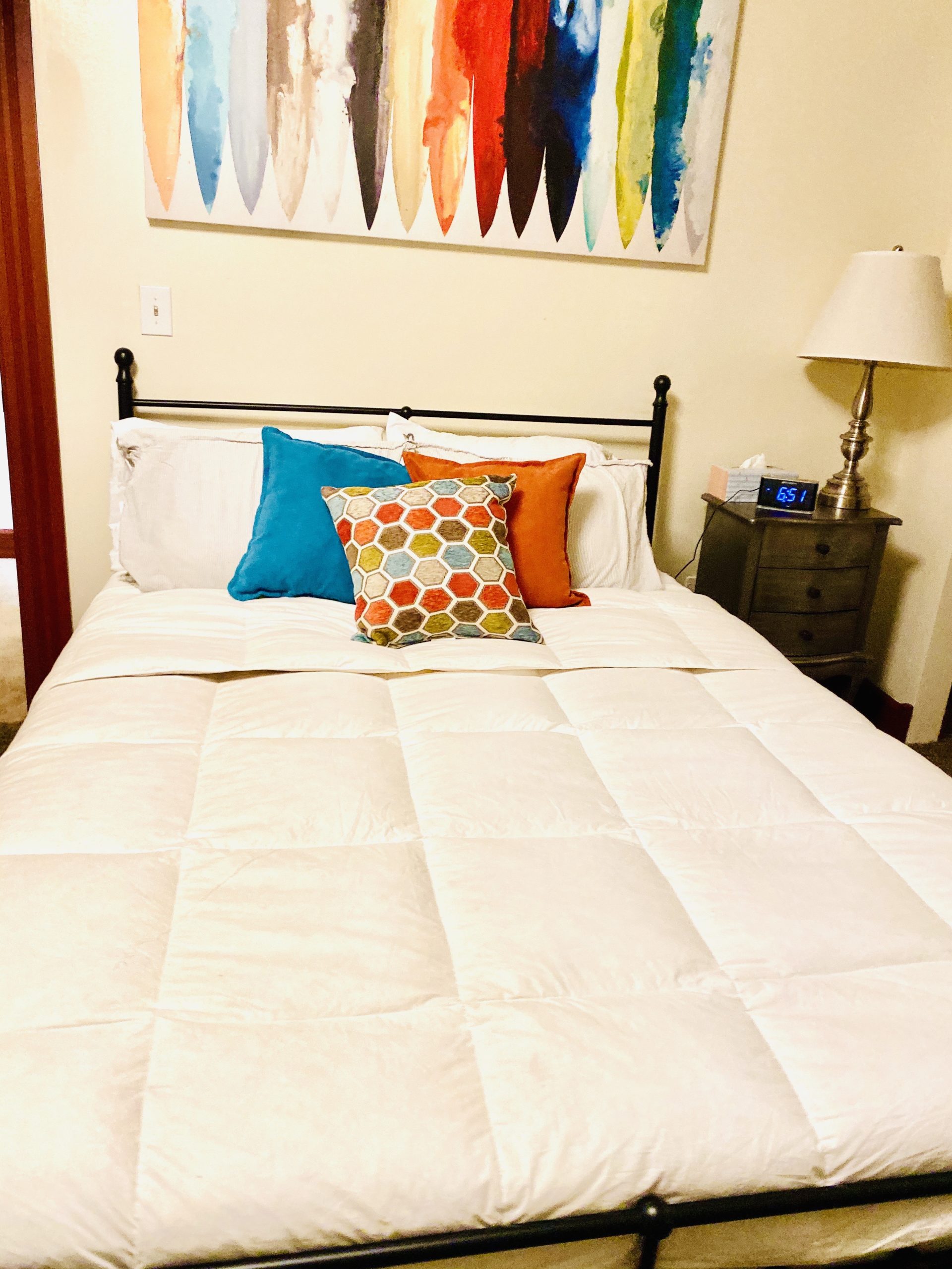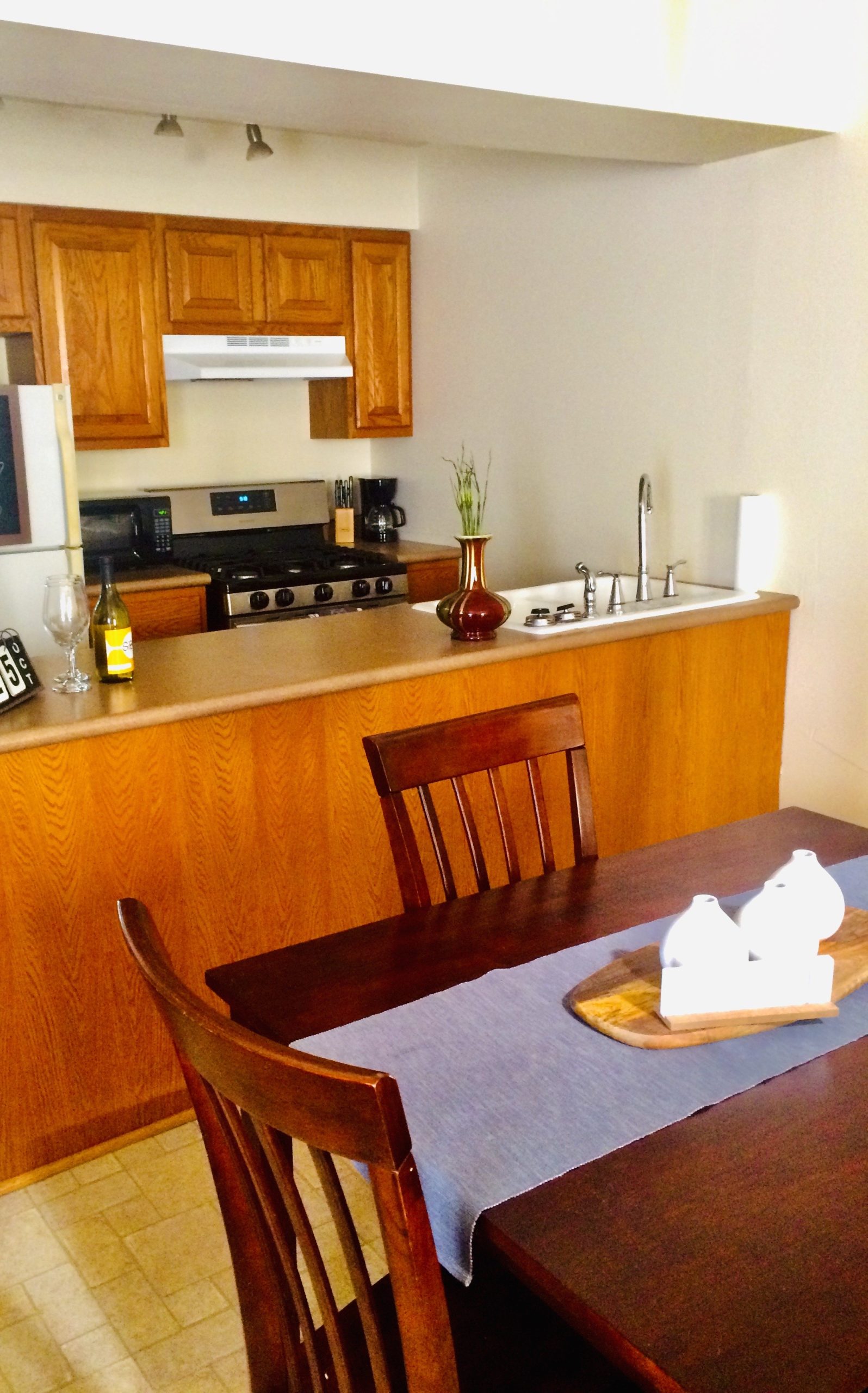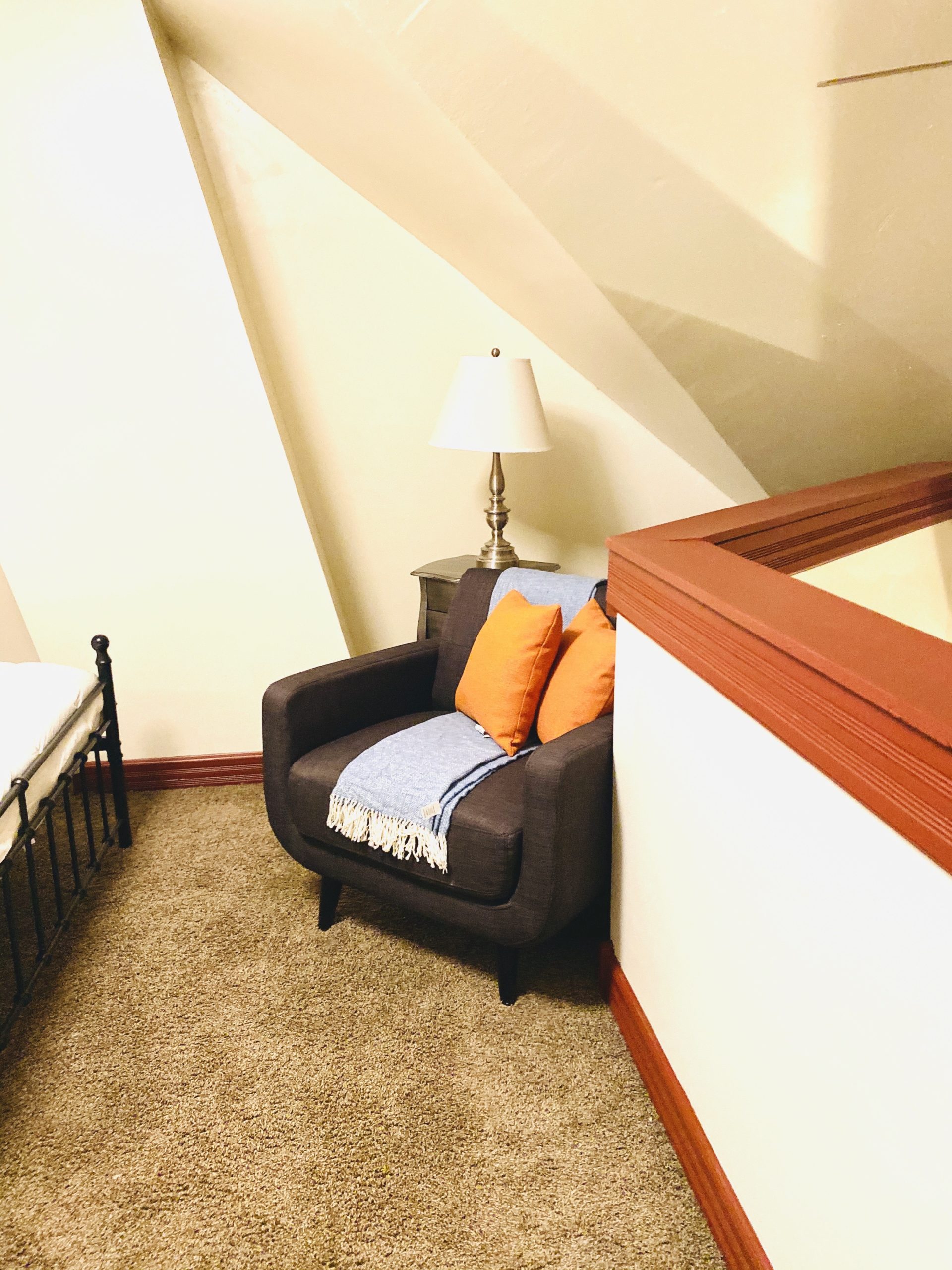 All your basics are covered with an in unit laundry, a full eat in kitchen, living room with electric fireplace, off street parking and two queen bedrooms. Bedroom two is a loft concept open to lower spaces. Lofted ceiling provides spacious feel to your Milwaukee duplex.