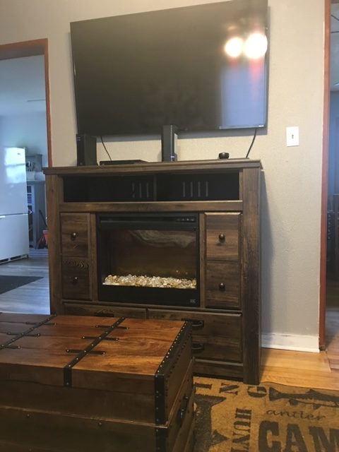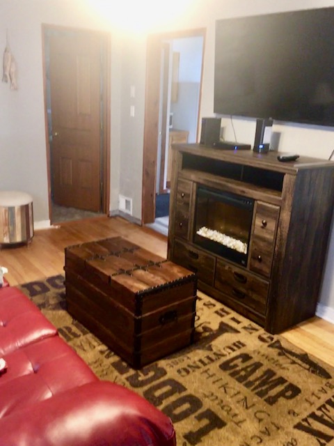 Yes to all the amenities — cable, wifi, utilities, fully stocked house, dishwasher, full kitchen, dining room and two bedrooms. Also a great big new smart TV and lovely electric fireplace to keep you warm in the winter and provide ambiance to your riverfront home.
